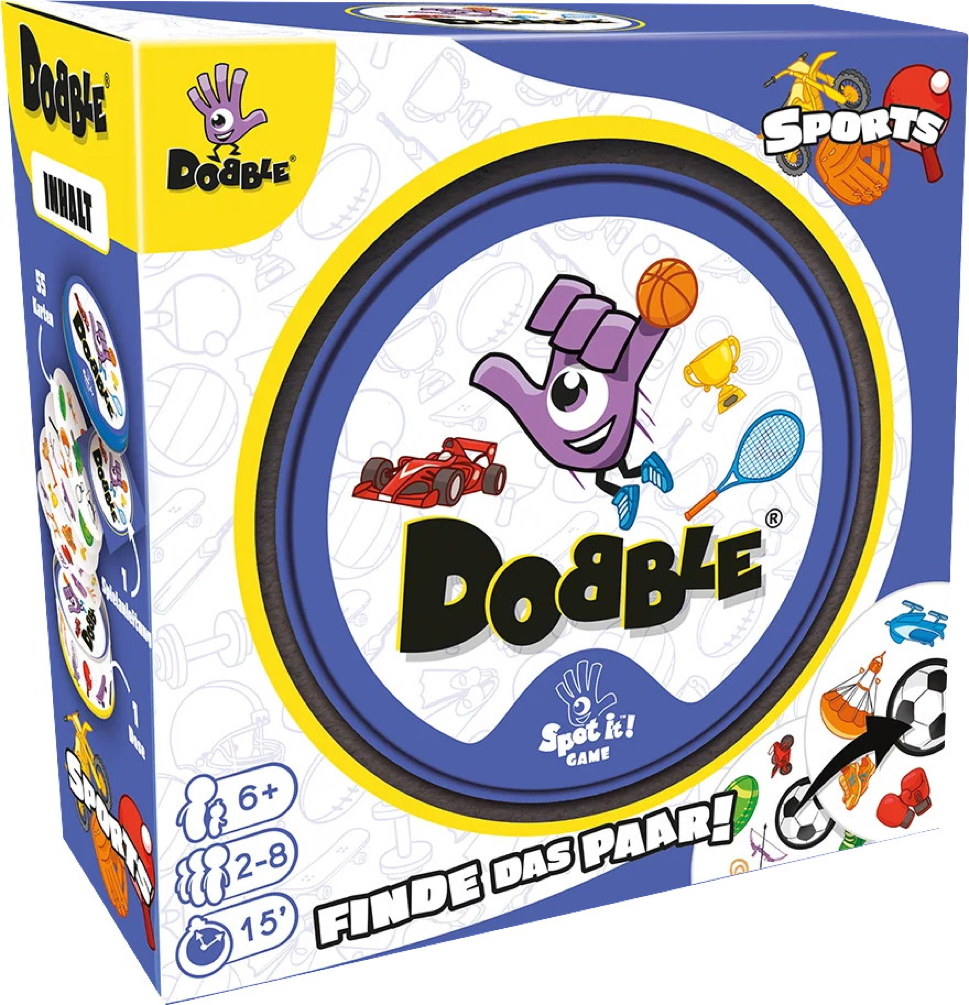 Einfach, schnell, genial: Dobble Sports ist das ultimative Reaktionsspiel für alle! Finde am schnellsten das übereinstimmende Symbol zwischen zwei Karten, um zu gewinnen! Mit 5 Spielvarianten wird jede Partie anders!