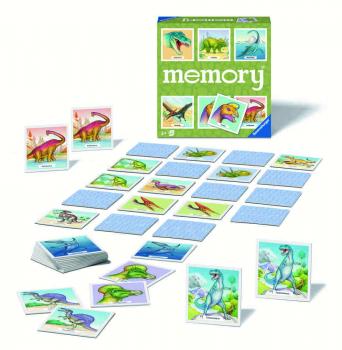Beim Ravensburger Dinosaurier memory® machen sich die Spieler auf die Suche nach zwei gleichen Bildkarten. Dazu decken sie abwechselnd zwei Karten auf und entdecken dabei die verschiedensten Dinosaurier Arten: Tyrannosaurus, Triceratops, Brachiosaurus und viele mehr! Wenn sich die Spieler gut merken, wo die identischen Dino-Karten liegen, können sie viele Bildpaare sammeln, faszinierende Dinosaurier entdecken und das Spiel gewinnen. Das Dinosaurier memory® von Ravensburger lässt die faszinierenden Urzeittiere wieder aufleben. Auf den 64 Karten finden große und kleine Dino-Fans wunderschön gezeichnete Bilder verschiedenster Arten dieser Urzeit Giganten. Egal ob Land-, Meeres- oder Flugsaurier, um ein passendes Bildpaar zu finden, sind Konzentration und ein gutes Gedächtnis nötig. Reihum werden jeweils 2 Karten aufgedeckt. Zeigen diese Karten unterschiedliche Dinosaurier-Bilder, werden sie sofort wieder umgedreht. Zeigen die beiden Karten jedoch das gleiche Bild, erhält der Spieler dieses Kartenpaar und darf gleich nochmals 2 Karten aufdecken. Es gewinnt, wer am Ende die meisten Kartenpaare hat.