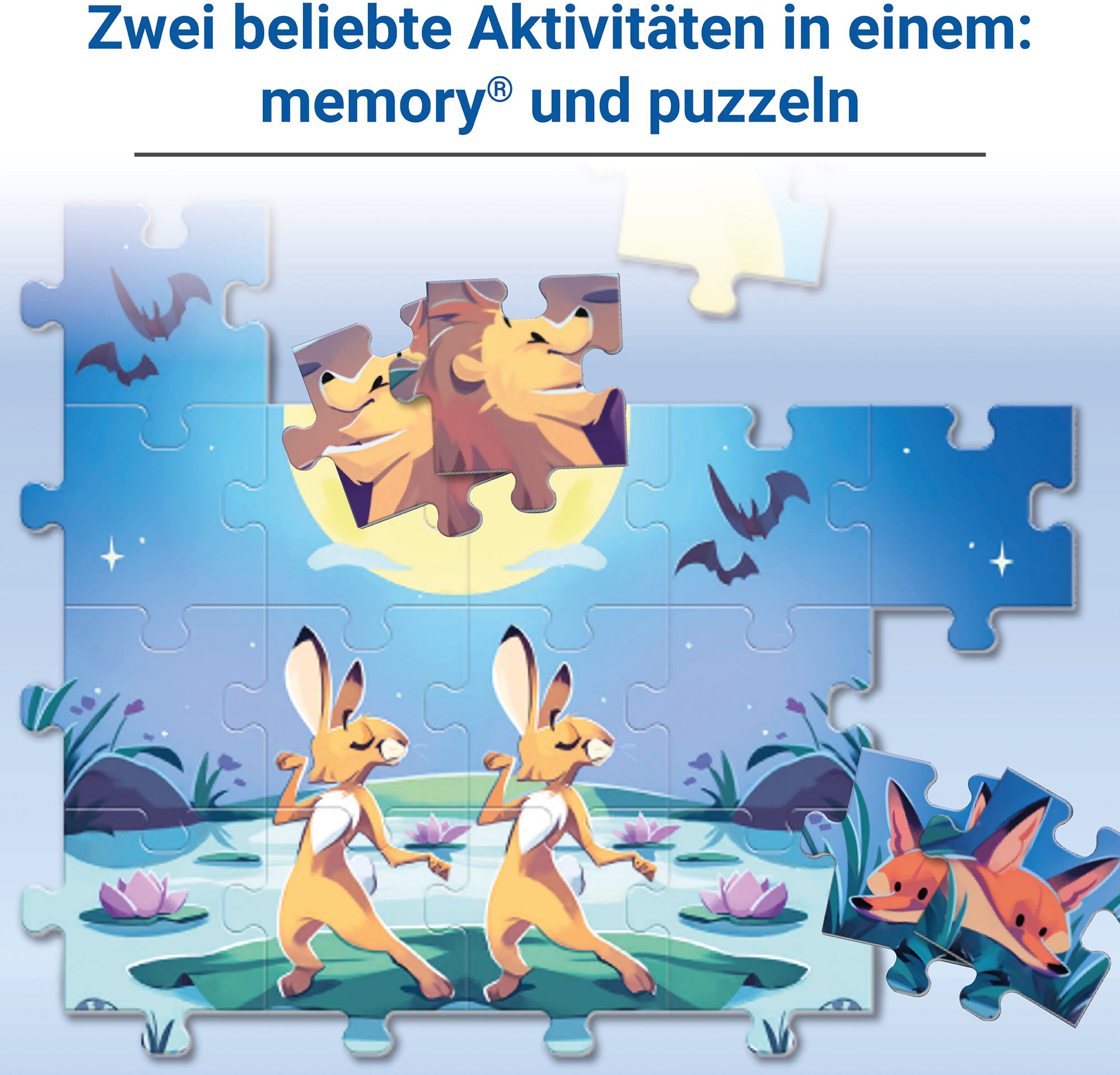 Das memory® Puzzle Tiere am Teich ist eine gelungene Kombination aus zwei Klassikern: Puzzle und memory®! Bildgleiche Paare suchen, anfügen und sich über das immer größer werdende Puzzlebild freuen