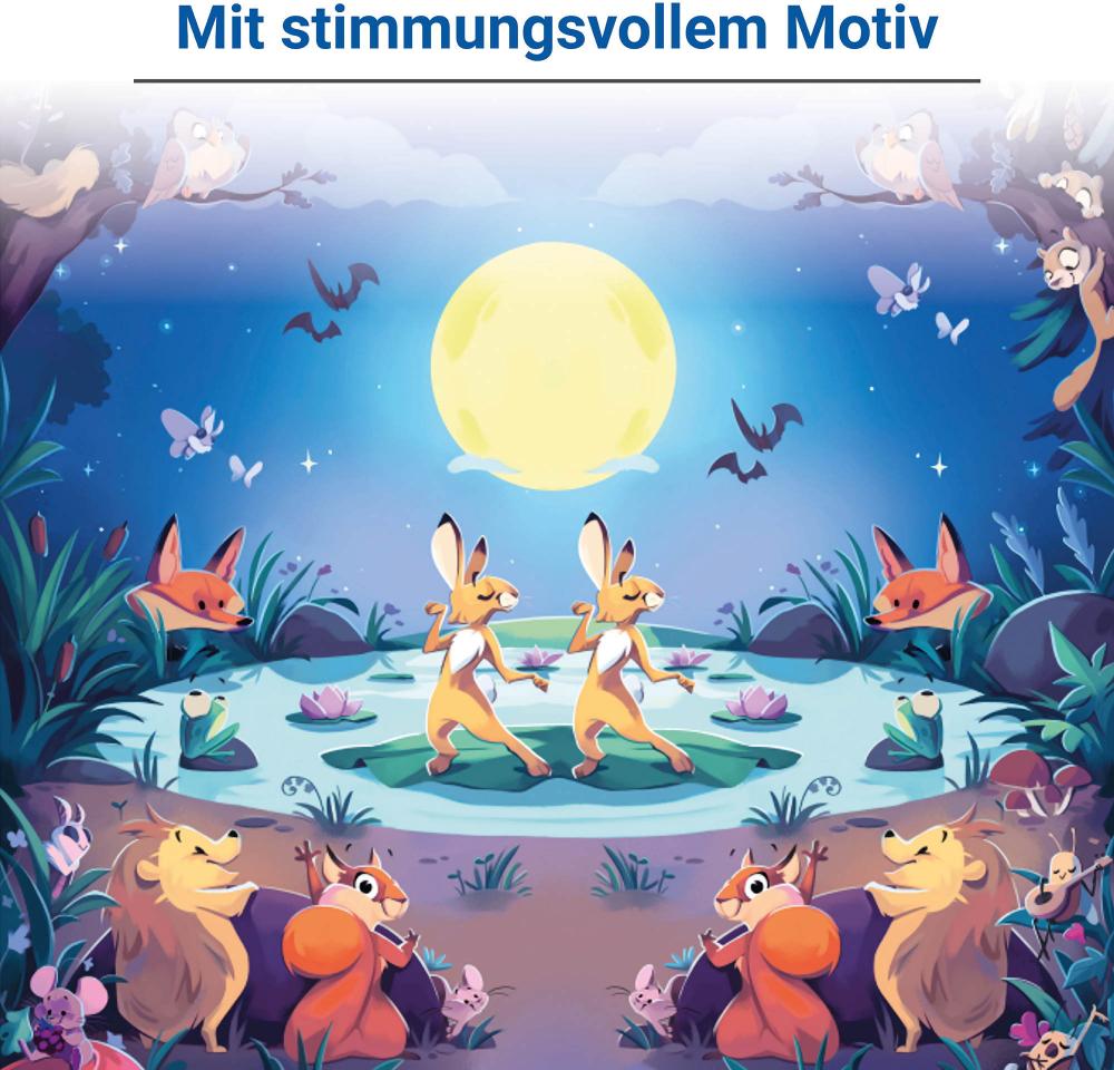 Zur fröhlichen Musik der Kapelle tanzt das Hasenpaar im Schein des aufgehenden Mondes. Die Waldbewohner, die ebenso immer paarweise am Teich erschienen sind, staunen nicht schlecht! Ziel des Spiels ist es, möglichst viele bildgleiche Puzzleteile zu finden und diese an das Bild der Tiere am Teich anzupuzzeln. Für jedes angelegte Puzzleteil-Paar erhalten die Spieler ein Randpuzzleteil als Gewinn. Es gewinnt, wer am Ende die meisten Randteile gesammelt hat und damit den höchsten Stapel bilden kann.