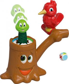 Der eifrige Vogel sitzt neben dem Baum und wartet auf die richtige Gelegenheit, um zuzuschlagen. Farbige Markierungen geben an, wo der gefiederte Jäger picken darf, wenn das passende Ergebnis gewürfelt wird. Mit jedem Loch, das der Schnabel verursacht, erhöht sich die Chance, dem frechen Specht zu seiner Beute und sich selbst zum Sieg zu verhelfen. Die Person, die am Zug ist, wenn der quietschende Wurm plötzlich aus dem Baumstamm herausspringt, hat das Spiel gewonnen.