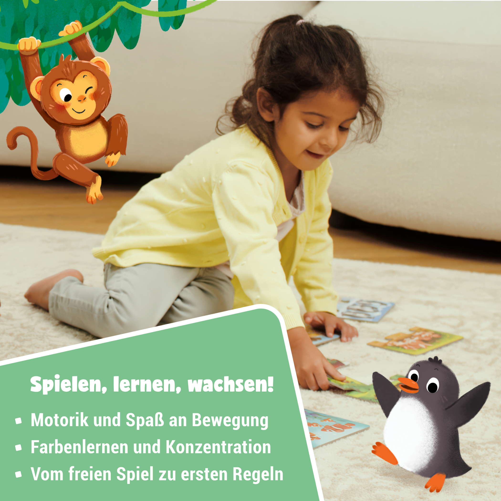Spielerischen Bewegung: Durch das Spiel wird die Grob- und Feinmotorik gefördert. Beim Zuordnen und Puzzeln der Tierkarten ist viel Geschick gefragt und durch die unterschiedlichen Schwierigkeitsstufen ist das Spiel für jedes Alter geeignet