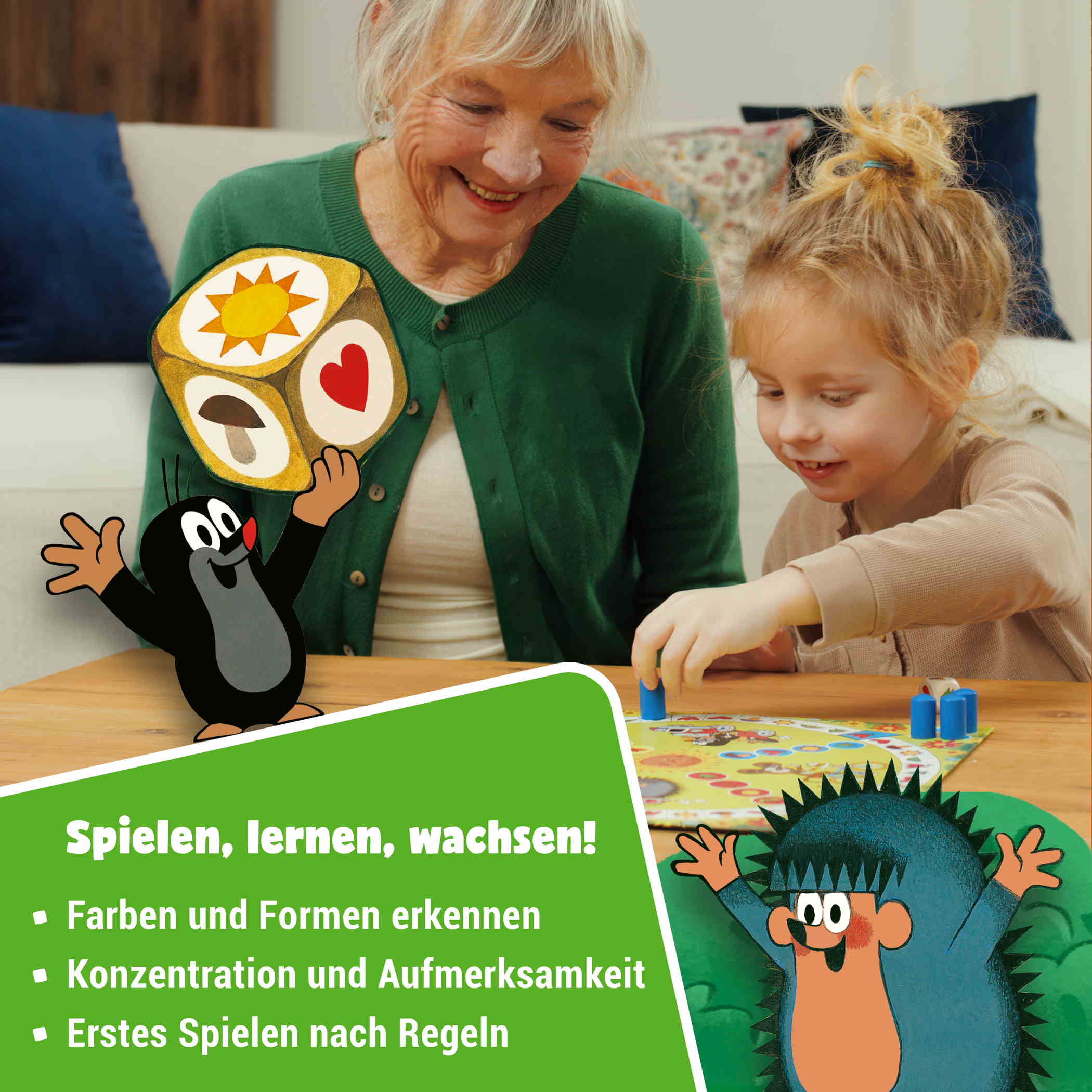 Großer Spieleklassiker: Der kleine Maulwurf und seine Freunde laufen um die Wette! Wer bringt zuerst alle 4 Spielfiguren ins Ziel?
