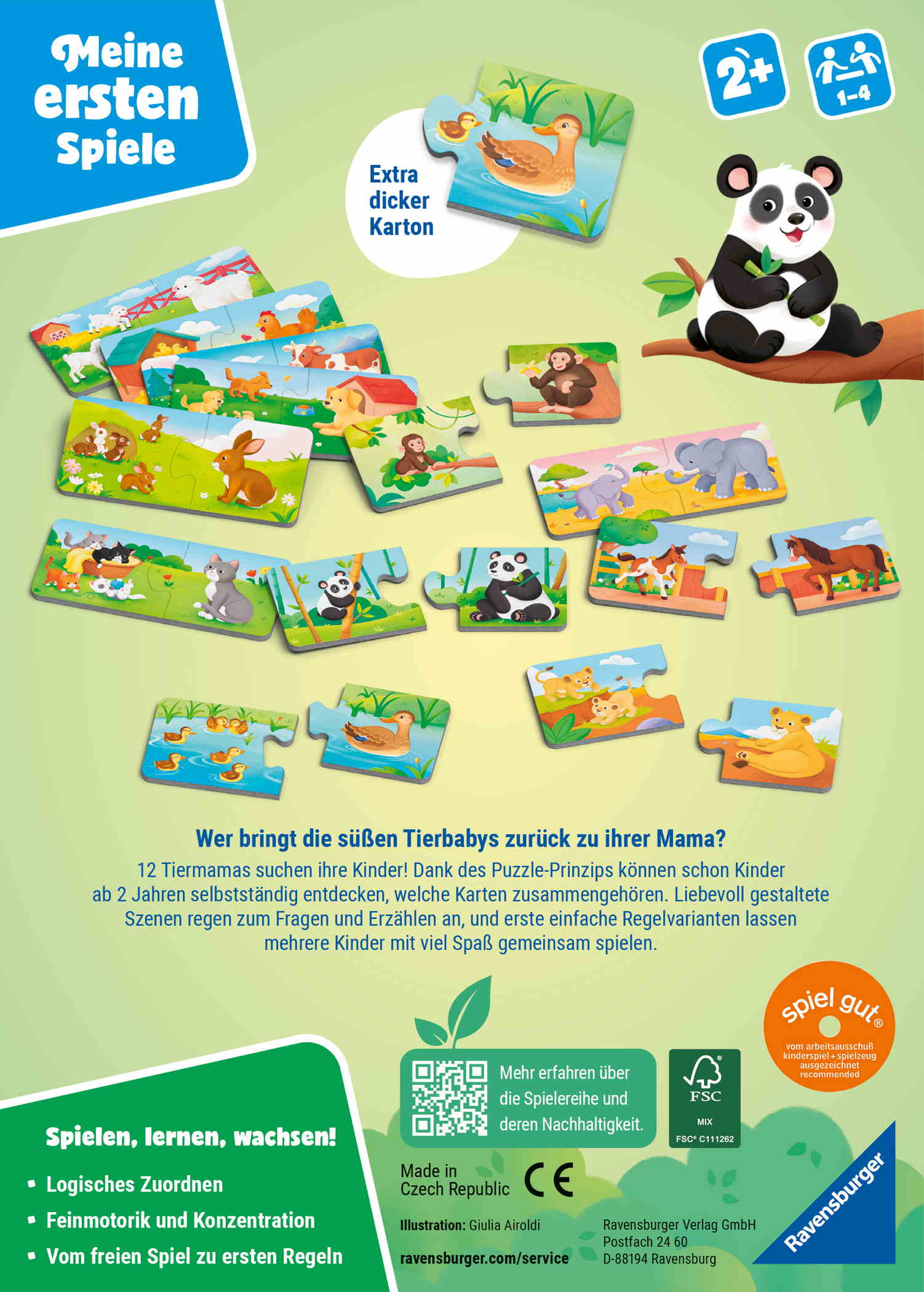 Spannendes Zuordnungsspiel: Vier unterschiedliche Spielvarianten bringen Abwechslung und sorgen dafür, dass das Spiel lange Spaß macht. Das Ziel ist jeweils, die Tierkinder mit dem richtigen Elternteil zu verbinden