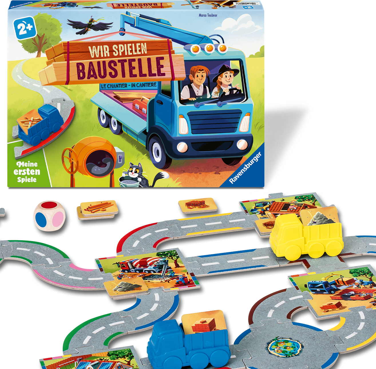 Spannendes Rollenspiel: Mit diesem hochwertig ausgestatteten Brettspiel können Kinder das beliebte Thema Baustelle mit einem frei gestaltbaren Straßennetz und Spielzeuglastwagen interaktiv nachspielen