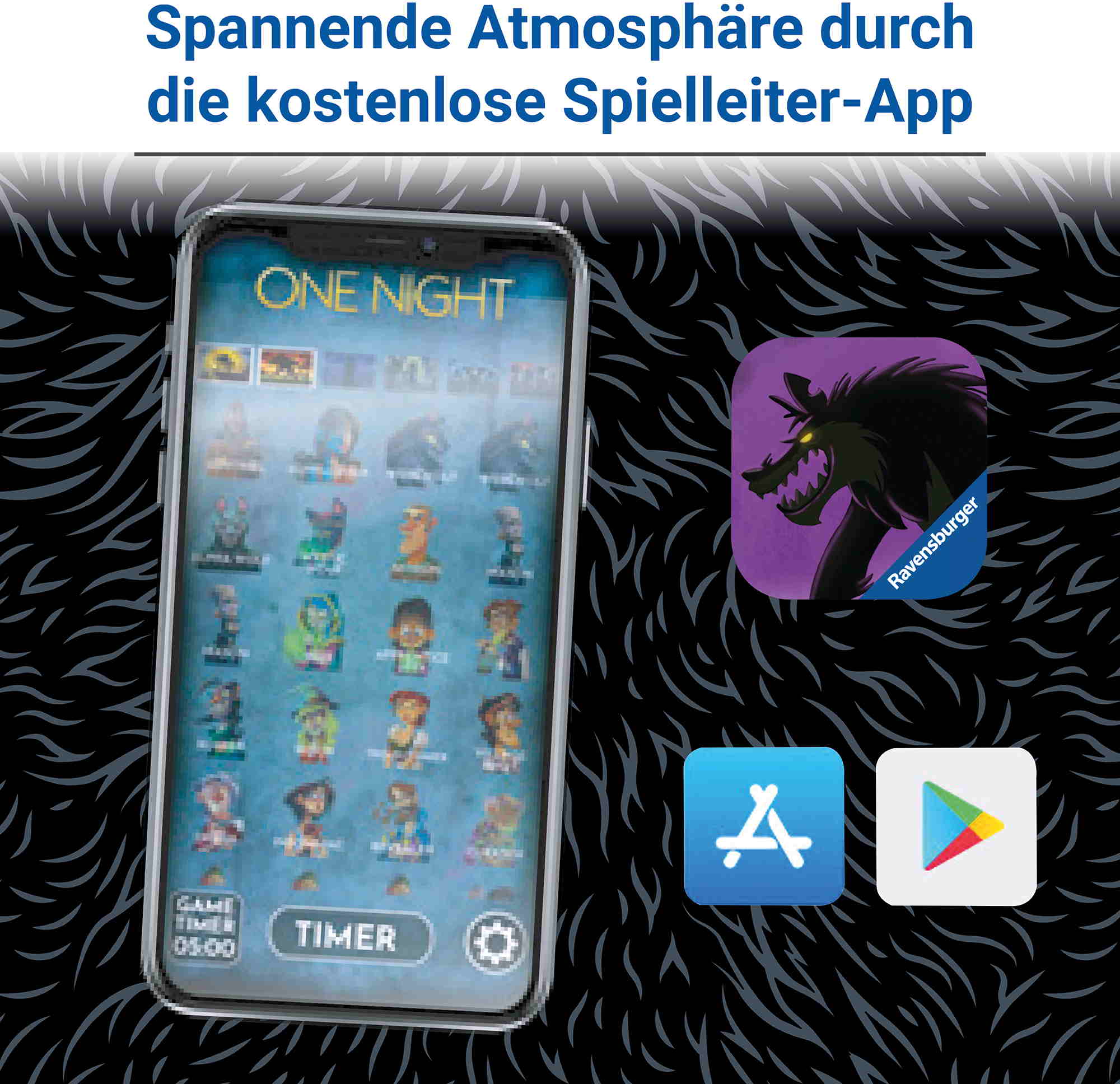 Optional führt ein Spieler oder die kostenlose „Werwölfe-Vollmondnacht“-Spielleiter-App durch das Spiel. Die App sorgt für einen leichten Spielstart und eine spannende Atomsphäre