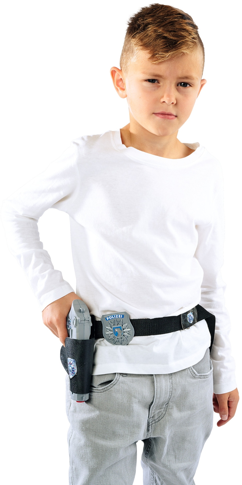 Wenn kleine Polizisten auf Streife gehen, benötigen sie die richtige Ausrüstung. Mit Gürtel, Handschellen, Funkgerät, Pistole und Pistolentasche ist jeder Polizist perfekt ausgerüstet. Der Gürtel ist von 40-80cm stufenlos verstellbar. Für Kinder ab 3 Jahren geeignet.