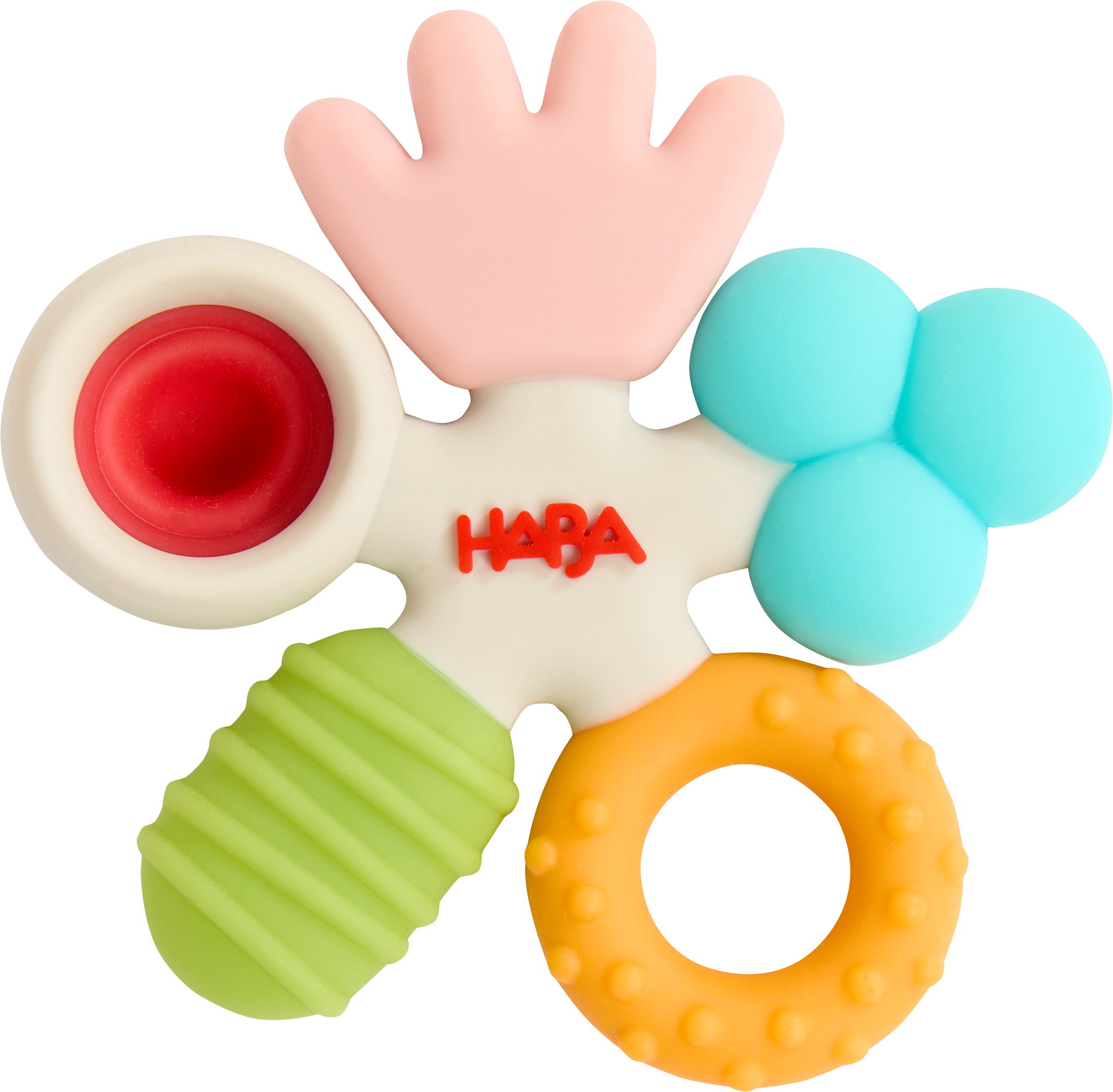 Der Greifling Wunderwirbel ist ein fesselndes Spielzeug für Babys, das zum Greifen, Erkunden und Beißspaß einlädt. Gefertigt aus hochwertigem Silikon, bietet er verschiedene Formen und Texturen, um die sensorische Entwicklung zu fördern. Jeder Abschnitt des Greiflings regt durch seine einzigartigen Strukturen die Neugier an und unterstützt die Feinmotorik. Die weichen Noppen sind ideal für zahnende Babys und bieten eine beruhigende Zahnungshilfe. Farbenfroh gestaltet, zieht der Wunderwirbel die Aufmerksamkeit auf sich und sorgt für Entdeckerspaß.