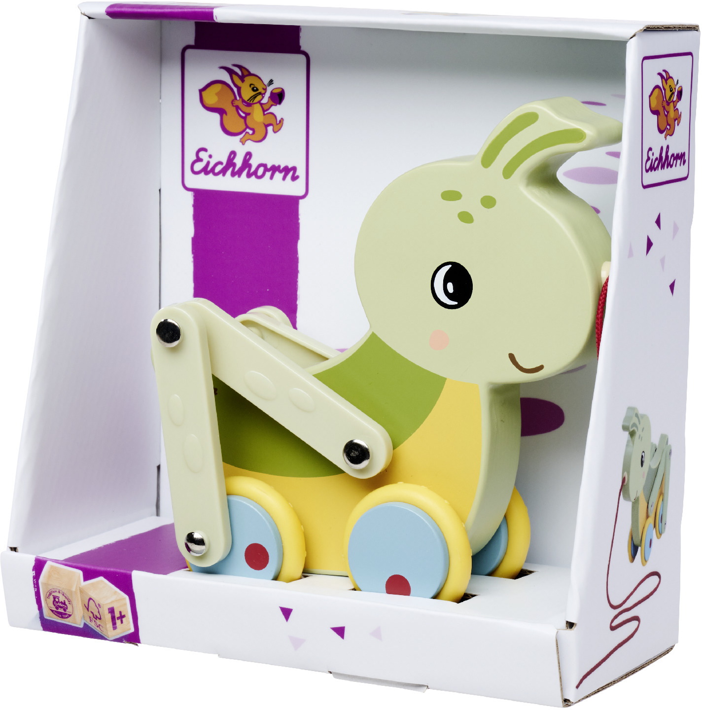 Erwecke die natürliche Neugier deines Kindes mit dem Nachziehgrashüpfer von Eichhorn aus der Bee Happy Linie! Gefertigt aus 100% FSC-zertifiziertem Holz, ist dieser farbenfrohe Grashüpfer nicht nur ein Spielzeug, sondern auch ein treuer Freund auf allen Abenteuern. Mit seinen beweglichen Beinen und der leichtgängigen Schnur animiert er kleine Krabbler dazu, die Welt zu erkunden – und begleitet sie später auf ihren ersten Schritten. Die robusten Räder sorgen dabei für ein sanftes Nachziehen, egal wohin die Reise geht. Ein nachhaltiger Spielspaß, der nicht nur begeistert, sondern auch die motorische Entwicklung Ihres Kindes fördert. Lass dein Kind in eine Welt voller Bewegung und Entdeckung eintauchen – mit dem Bee Happy Nachziehgrashüpfer von Eichhorn!