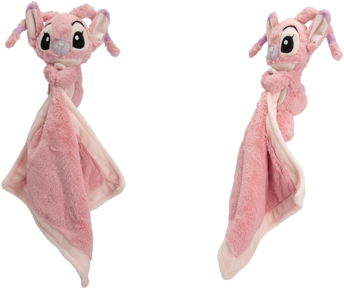 Bekannter Disney-Charakter – Angel, bekannt aus "Lilo & Stitch", als liebevolle Plüschfigur mit einem weichen Schmusetuch in niedlichem Rosa, wird zum treuen Begleiter für die Kleinsten.
