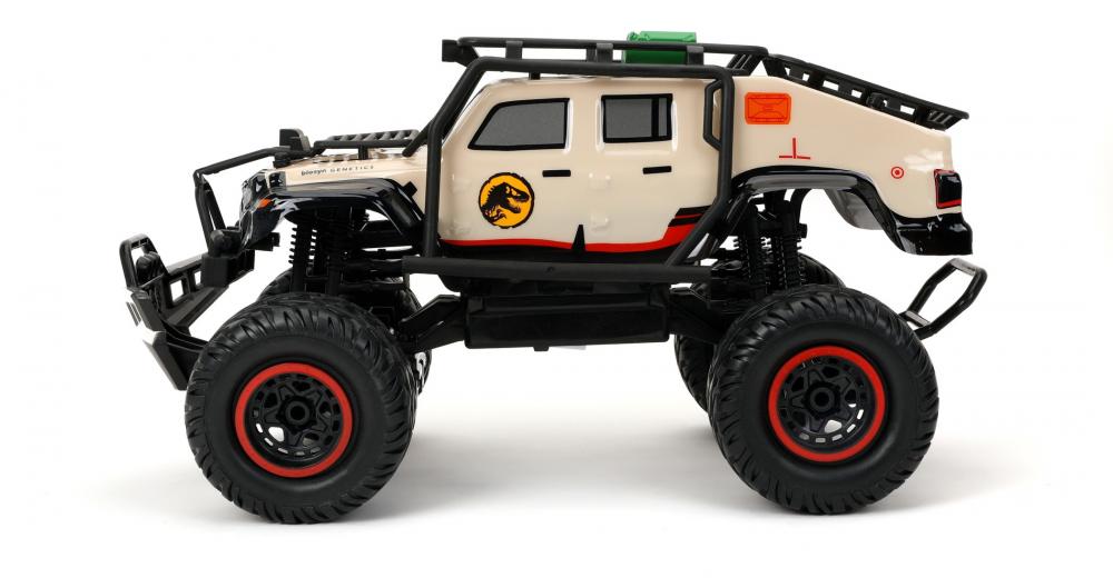 - In einer Welt, in der Menschen und Dinosaurier nebeneinander existieren, ist der ferngesteuerte Jeep Gladiator von Jurrasic World Dominion im Maßstab 1:12 der Truck, der wie geschaffen ist für Off-Road-Fahrten