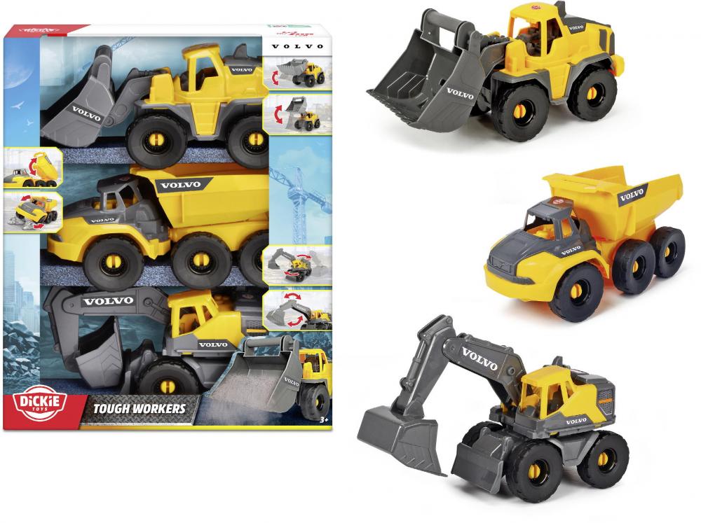 Dickie Spielfahrzeug Go Real Volvo Tough Work Force 3er Pack Kipper, 2 Bagger 203725007